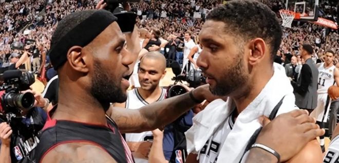 第一位有资格的,便是蒂姆・邓肯。邓肯和詹姆斯,堪称NBA历史上著名的宿敌,两人在总决赛的舞台上多次相遇,每一次对决都充满了看点。2007年的总决赛,当时的詹姆斯还是初出茅庐的 “小皇帝”,带领骑士队首次闯入总决赛,而邓肯则是身经百战的马刺队核心。最终,马刺队以4-0的悬殊比分击败骑士队,邓肯在赛后对詹姆斯说出了那句流传至今的名言:“未来属于你”。如今,詹姆斯早已接过了时代的大旗,成为了联盟的标志性人物,而这句 “未来属于你”,也成为了 NBA 历史上的经典瞬间之一。