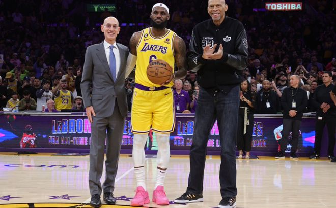 第二位有资格的,是天勾贾巴尔。贾巴尔对于詹姆斯一直十分欣赏,而他还有一个特殊的身份 —— 詹姆斯之前的NBA历史得分王。在詹姆斯打破贾巴尔的历史得分纪录之前,贾巴尔的得分纪录被认为是难以逾越的高峰,而詹姆斯凭借着漫长的职业生涯和稳定的得分能力,最终实现了这一壮举。值得一提的是,两人都是洛杉矶湖人队的名宿,在湖人队的队史上,他们都是当之无愧的顶级球星,都为湖人队的辉煌立下了汗马功劳。当詹姆斯在比赛中打破贾巴尔的历史得分纪录时,贾巴尔亲自来到现场,为詹姆斯送上祝贺。在那一刻,贾巴尔脸上的欣慰与认可溢于言表,他不仅见证了新纪录的诞生,更看到了 NBA 历史的传承与延续。贾巴尔的职业生涯同样辉煌至极,他是20世纪80年代的第一中锋,职业生涯共获得 6 枚 NBA 总冠军戒指和 6 次常规赛 MVP,这样的荣誉即便与詹姆斯相比,也更为夸张。在数据方面,贾巴尔的总得分、总篮板和总盖帽都位居 NBA 历史前3,无论是从个人荣誉、历史数据还是对联盟的影响力来看,贾巴尔都完全有资格成为詹姆斯的名人堂引荐人。他与詹姆斯之间的得分王传承,也让这份引荐更具历史意义。