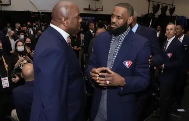 第三位有资格的,是魔术师约翰逊,詹姆斯能够加盟洛杉矶湖人,魔术师功不可没。当年,为了说服詹姆斯来到湖人,魔术师付出了大量的努力,他向詹姆斯描绘了湖人的未来蓝图,展现了球队重建的决心。可以说,如果没有魔术师的积极运作,湖人今天或许就不会有詹姆斯的身影。也正因如此,詹姆斯和魔术师之间的私交十分不错,尽管他们并非同一时期的球星,一个活跃于20世纪80年代,一个则在21世纪开启自己的传奇生涯,但他们彼此之间依旧惺惺相惜,对彼此的篮球智商和领导力都十分认可。魔术师作为 NBA 历史第一控卫,他的职业生涯充满了传奇色彩。他以出神入化的传球技巧闻名于世,能够在场上轻松串联起球队的进攻,为队友创造出无数得分机会。在个人荣誉方面,魔术师手握5枚总冠军戒指、3次常规赛MVP 和3次总决赛 MVP,无论是影响力、历史地位,还是个人实力,都一点不输詹姆斯。更重要的是,两人都是各自位置上的 “第一人”,魔术师是控卫位置的标杆,詹姆斯则是小前锋位置的传奇。让魔术师担任詹姆斯的名人堂引荐人,不仅契合两人之间的深厚渊源,更能体现出不同时代 NBA 顶级球星之间的传承,无疑是一个十分合适的选择。