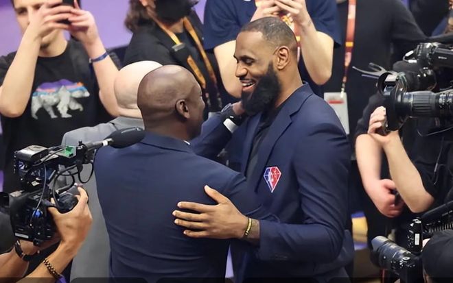 最后一位有资格的,自然是 “篮球之神” 迈克尔・乔丹。在 NBA 的历史上,乔丹的地位无人能够撼动,能够让乔丹担任自己的名人堂引荐人,对任何一位球星来说,都是一种莫大的荣幸。长久以来,外界一直流传着乔丹和詹姆斯关系不和的说法,但事实上,这些大多是媒体为了博取眼球而杜撰出来的新闻。真实情况是,乔丹和詹姆斯之间保持着良好的关系,乔丹对詹姆斯的职业生涯成就也十分认可,他曾多次在公开场合称赞詹姆斯的能力和对篮球的贡献。乔丹作为 NBA 历史第一人,他的职业生涯堪称完美。6 枚总冠军戒指、5 次常规赛 MVP、6 次总决赛 MVP,这样的荣誉履历足以让所有球星望尘莫及。在数据方面,乔丹的职业生涯场均得分达到 30.1 分,位居历史第一,他的抢断、助攻等数据也都处于历史上游。无论是荣誉、数据,还是对全球篮球运动的影响力和历史地位,乔丹都在詹姆斯之上。在NBA的历史排名中,詹姆斯的历史地位也仅次于乔丹,两人被认为是NBA历史上最伟大的两位球员。如果说乔丹是篮球史上最高的山脉,巍峨耸立,难以逾越;那么詹姆斯就是最长的河流,绵延不绝,影响深远。在整个 NBA 历史上,也只有詹姆斯有资格与乔丹竞争历史第一人的位置。如果乔丹能够来担任詹姆斯的名人堂引荐人,那么这将是NBA历史上最具分量的一次名人堂引荐,必定会成为联盟的一段千古佳话,被球迷们永远铭记。