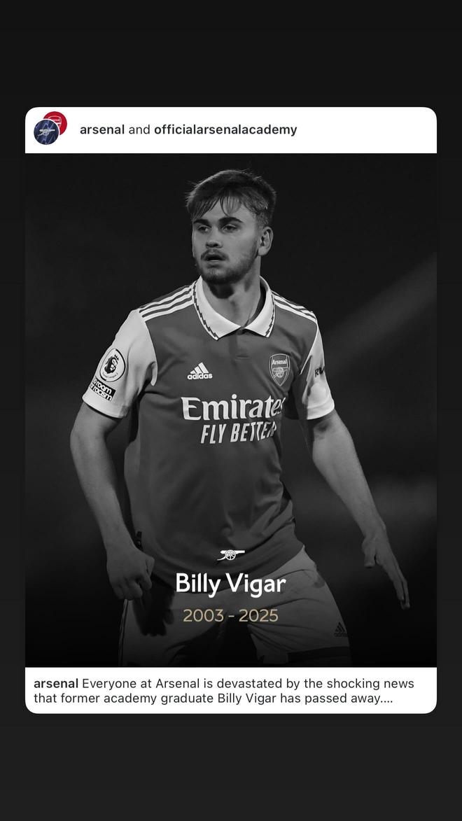 哀悼,阿森纳青训出身的李可悼念比利维加
