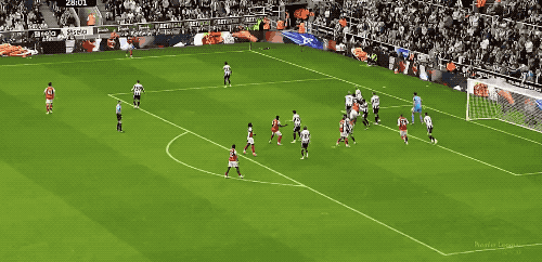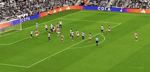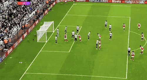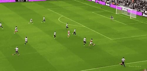 第34分钟,纽卡斯尔开出战术角球,托纳利不停球传中,沃尔特马德力压加布里埃尔,头槌破门。