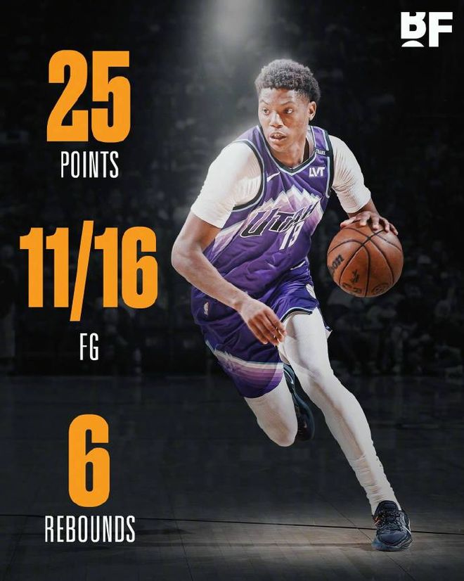 而爵士队内的5号秀贝利也有着出色的表现,他在选秀大会前的试训,一度不愿意前往爵士,可如今在季前赛的首秀兑现了自己的天赋。首秀出战31分钟,16投11中,三分5中2,拿到25分6篮板3助攻,在场上也是很自如,看来爵士坚持选他也是正确的。而在比赛中,他还与杜兰特喷垃圾话,不过后者也是怒喷:你还只是个菜鸟,快给我闭上嘴坐下。