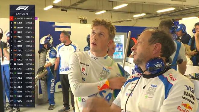 起步轮胎方面:维斯塔潘、哈贾尔、角田裕毅、塞恩斯、博托莱托和加斯利用中性胎起步,阿尔本和科拉平托使用硬胎,其他车手都是软胎。