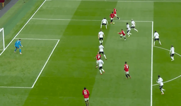而曼联基本上属于以不变应万变,从开场阶段主动追求稳定的防守,再到很快发现了热刺的弱点,随即逐渐占据主动权。进攻端有组织、有层次的推进,一度让热刺非常被动。