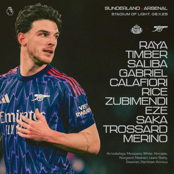- 英超 | 阿森纳客战桑德兰:扎卡战旧主,萨卡、埃泽、梅里诺首发