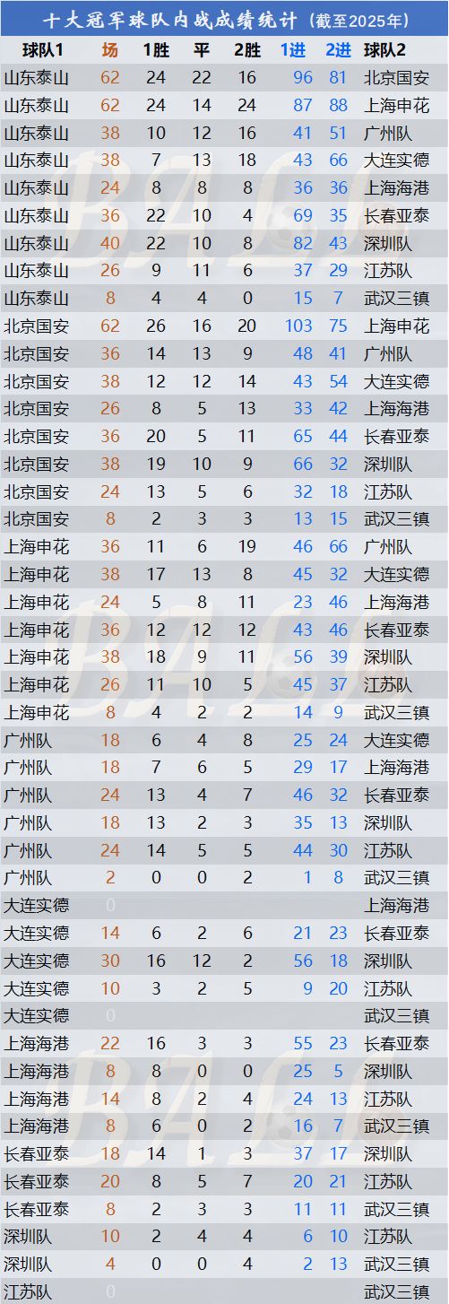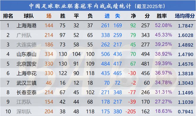 - 中超 | 你们不要再吵了!中超&甲A十大冠军对战成绩全览:谁是真强者