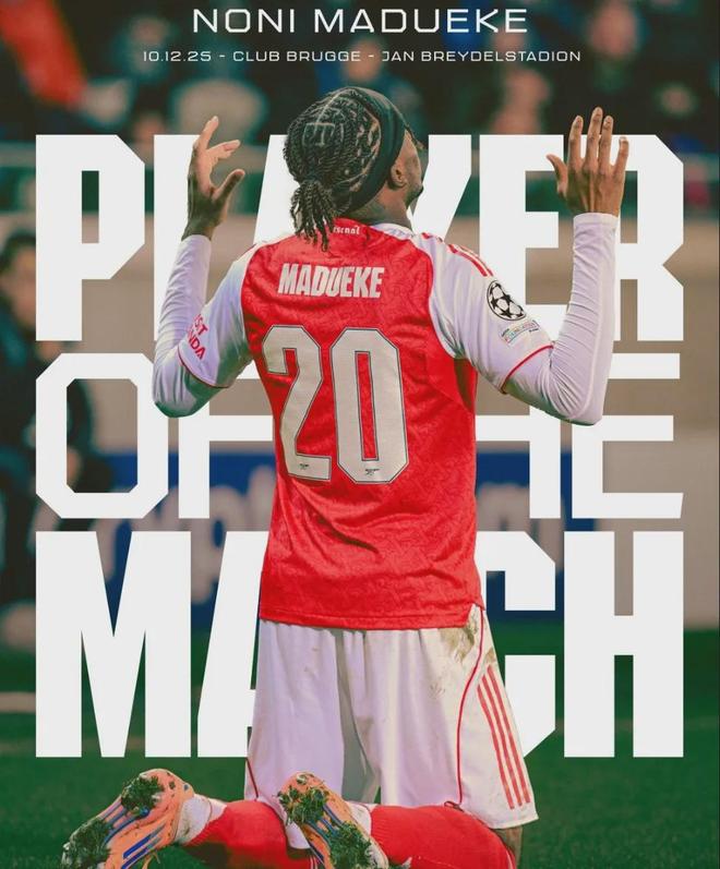 官方:马杜埃凯被阿森纳票选为了全场比赛最佳球员。同时马杜埃凯也是欧冠官方评选的最佳球员。