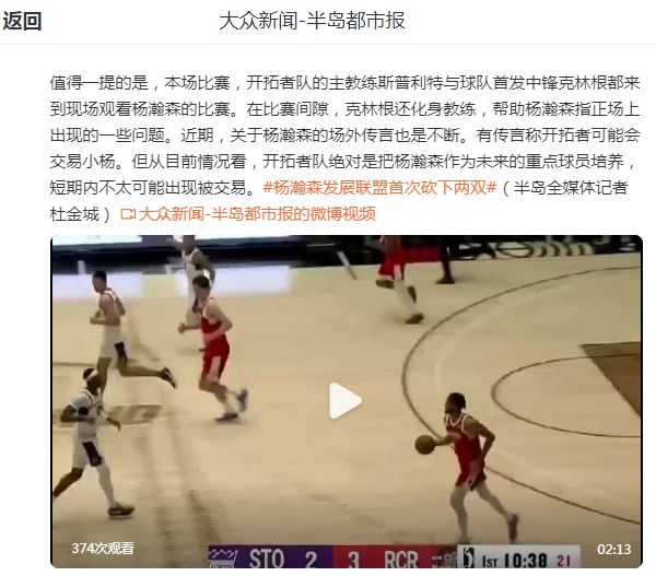 记者解析杨瀚森处境:是开拓者重点培养对象短期内不会被交易